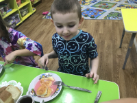 В детском саду детей учат правильно пользоваться ножом во время еды, начиная с 5–6 лет. Некоторые правила пользования ножом: - Нож держат в правой руке лезвием вниз, а вилку — в левой, зубчиками вниз. - Ножом нарезают пищу на кусочки, придерживая вилкой. - Нож помогает положить гарнир на вилку. - Нельзя есть с конца ножа или подносить его ко рту.